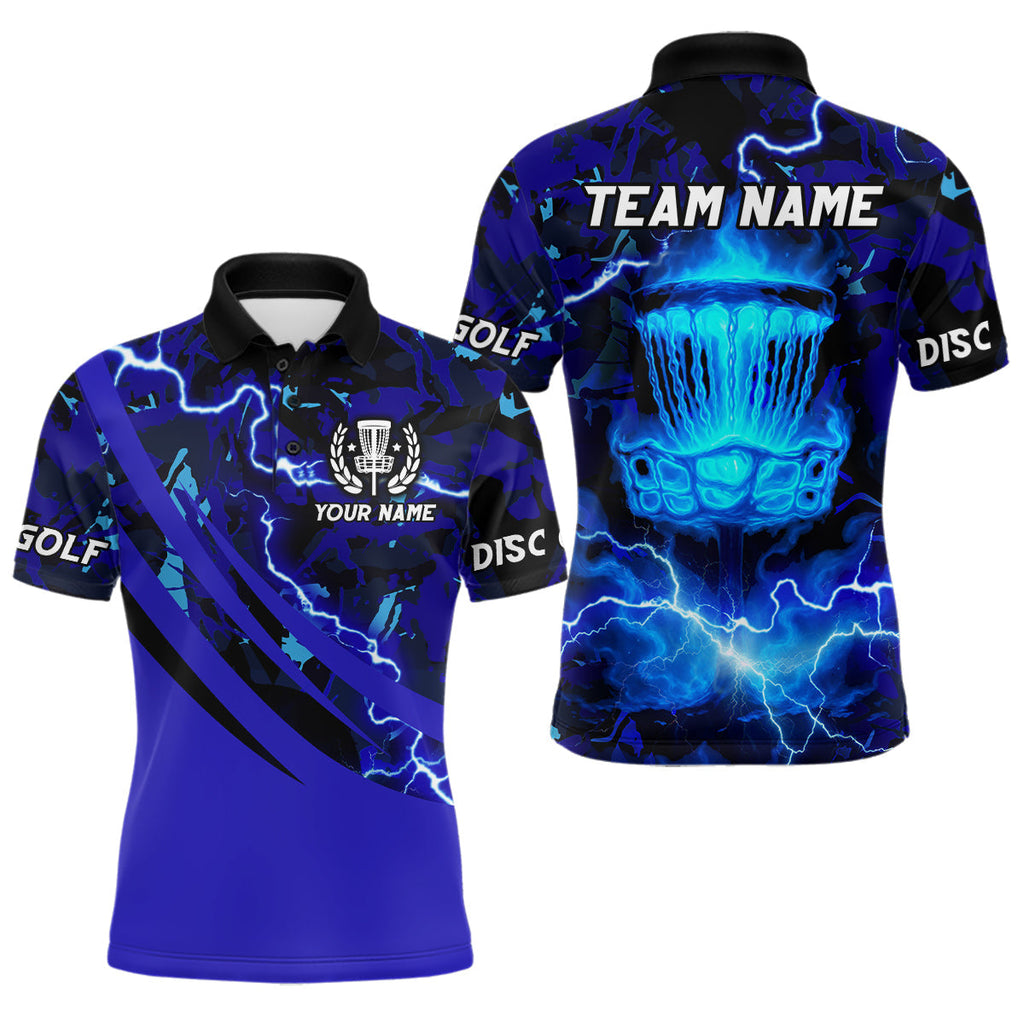 Maxcorners Blue Camo Lightning Thunder Mens Disc golf polo shirts, team disc golf jersey custom LM1411