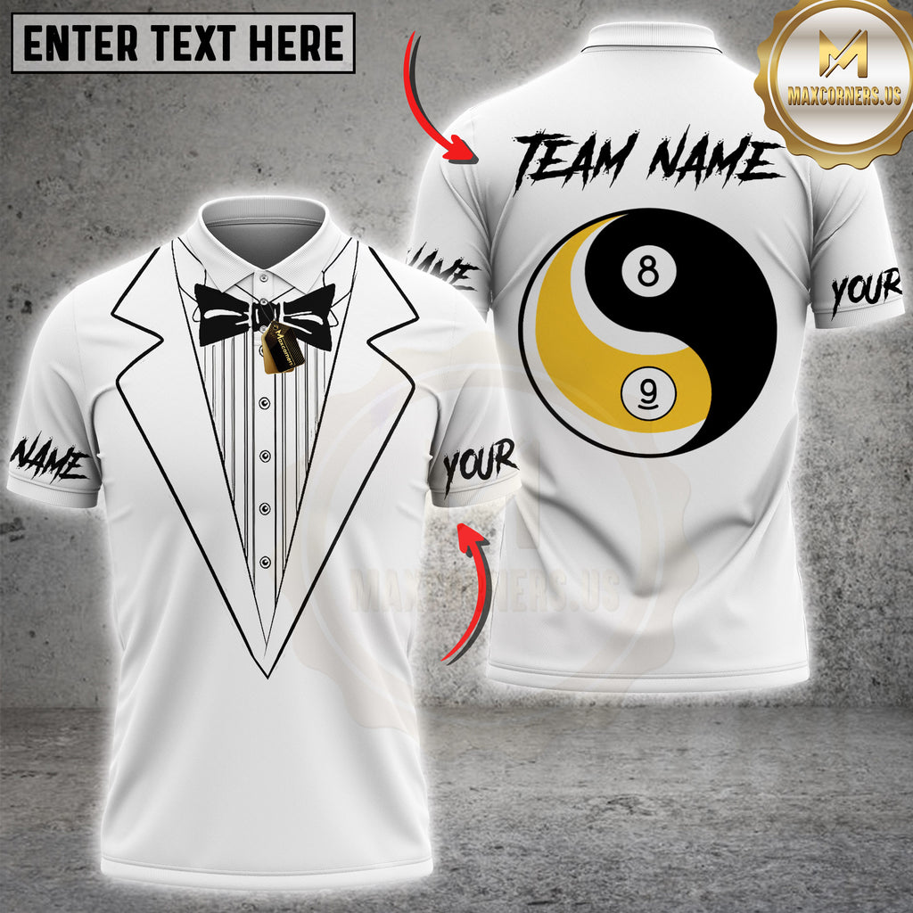 Maxcorners Billiards Tuxedo Yin Yang 8 9 Ball Personalized Name 3D Unisex Shirt