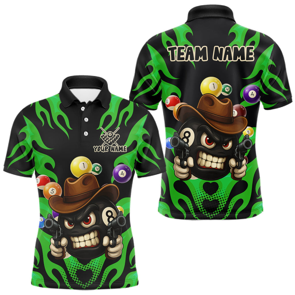 Maxcorners Personalized Green Funny Flame 8 Ball Billiard Shirt For Men Custom Pool Team Jersey Polo, 1/4 Zi LM0910