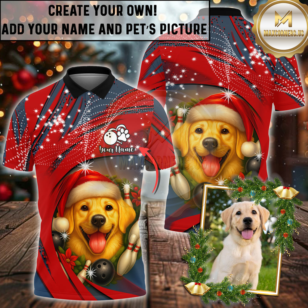 Maxcorners Bowling Labrador Christmas Wreath Multioptions Customized Name And Pet's Picture 3D Shirts