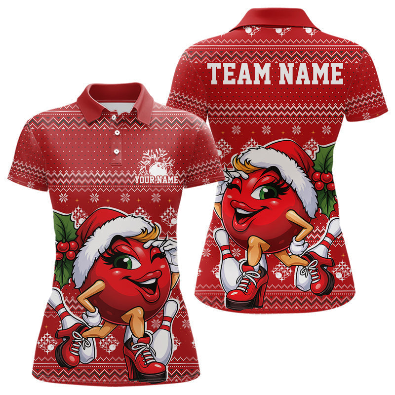 Maxcorners Custom Cute Funny Ladies Ver 5 Christmas Bowling Polo Shirts, Women Team Xmas Bowling Outfit MT1511