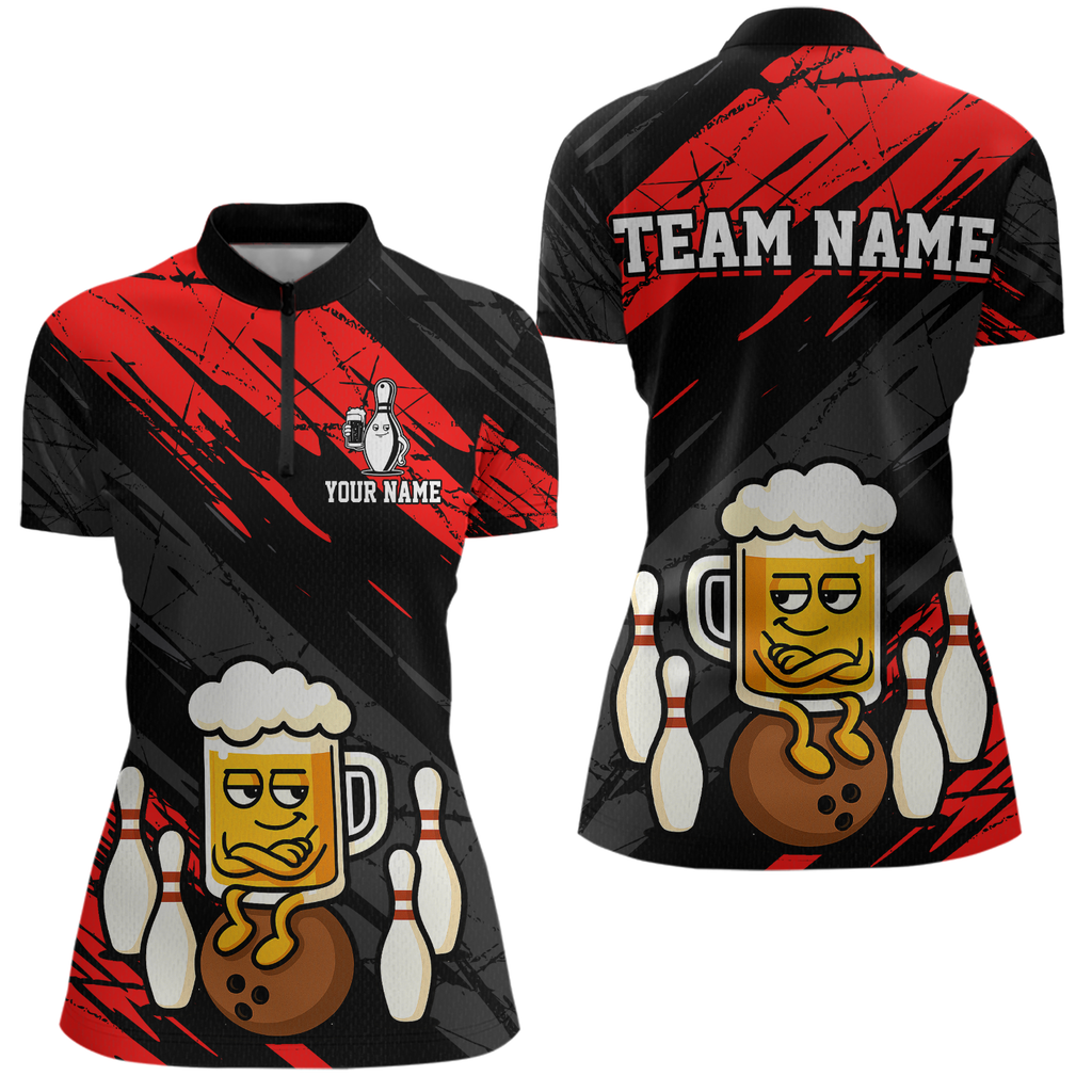 Maxcorners Custom Red Funny Beer Bowling Jersey for Men Bowling Uniform Polo & 1/4 Zip Bowling Team Shirts MT2009