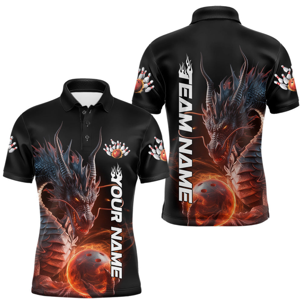 Maxcorners Custom Smoke Flame Dragon Bowling Polo Shirt For Men, Dragon Bowling Team Jerseys LM2509