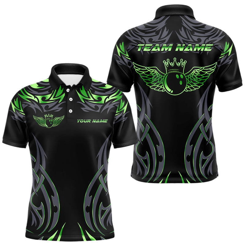 Maxcorners Personalized Black And Green tribal pattern Bowling Shirts For Men, angel wings Bowling Team jerseys MT2709