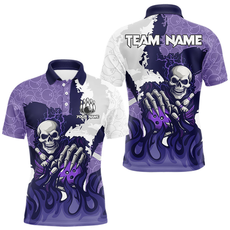 Maxcorners White and Purple Camo Flame Lightning Skull Bowling Shirts For Men Custom Bowling Team Jerseys TU1011