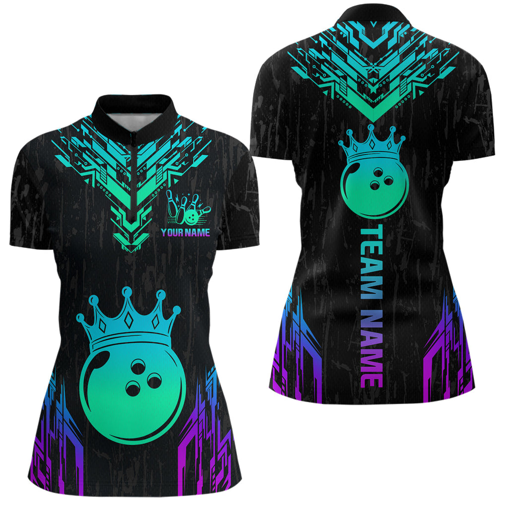 Maxcorners Custom Black Neon Crown Bowling Jersey for Men Bowling Uniform Polo & 1/4 Zip Bowling Team Shirts MT2009