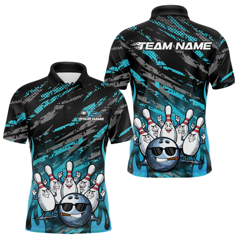 Maxcorners Custom Blue Camo Funny Flame Bowling Men Polo Shirts, Bowling Team League Shirt LM0611