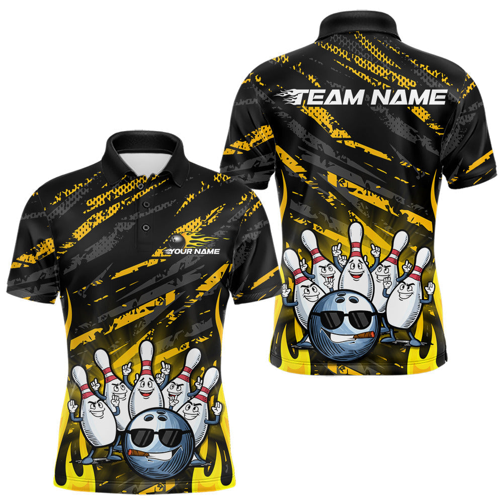 Maxcorners Custom Yellow Camo Funny Flame Bowling Men Polo Shirts, Bowling Team League Shirt LM0611