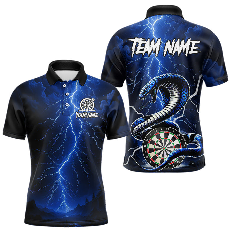 Maxcorners Blue Lightning Thunder Cobra Darts Shirt For Men Custom Darts League Team Jersey Polo & 1/4 Zip LM2509
