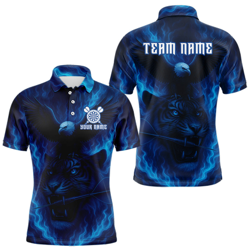 Maxcorners Custom Lightning Blue Tiger Eagle Horror Dart Polo Shirt For Men Dart Tournament Jersey LM1809