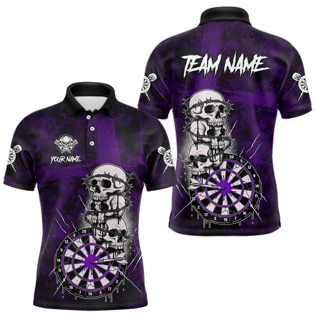 Maxcorners Custom Purple Grunge Barbed Wire Grey Skull Dartboard Men Darts Polo Shirt Dart Jerseys TU1711