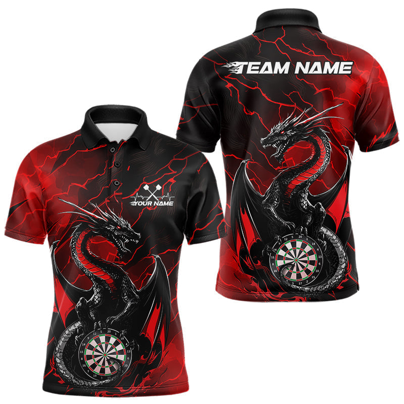 Maxcorners Custom Red Thunder Lightning Dragon Dart Polo Shirts For Men, Dragon Dart Team Jerseys LM2509