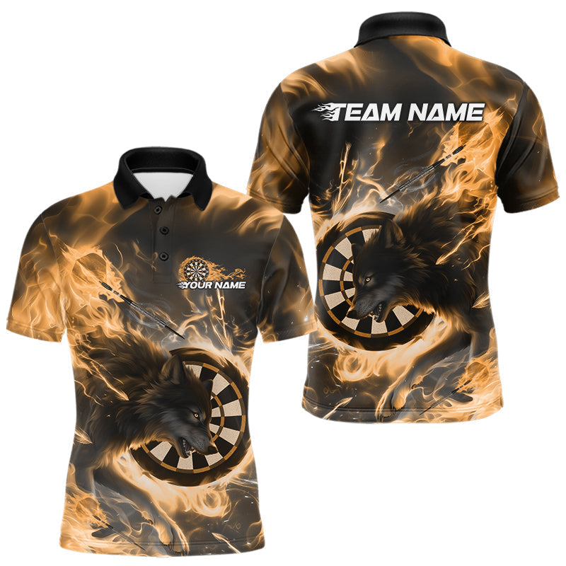 Maxcorners Custom Yellow Fire Flame Dart Wolf Men Polo Shirts, Dart League Shirt Team Jerseys MT1110