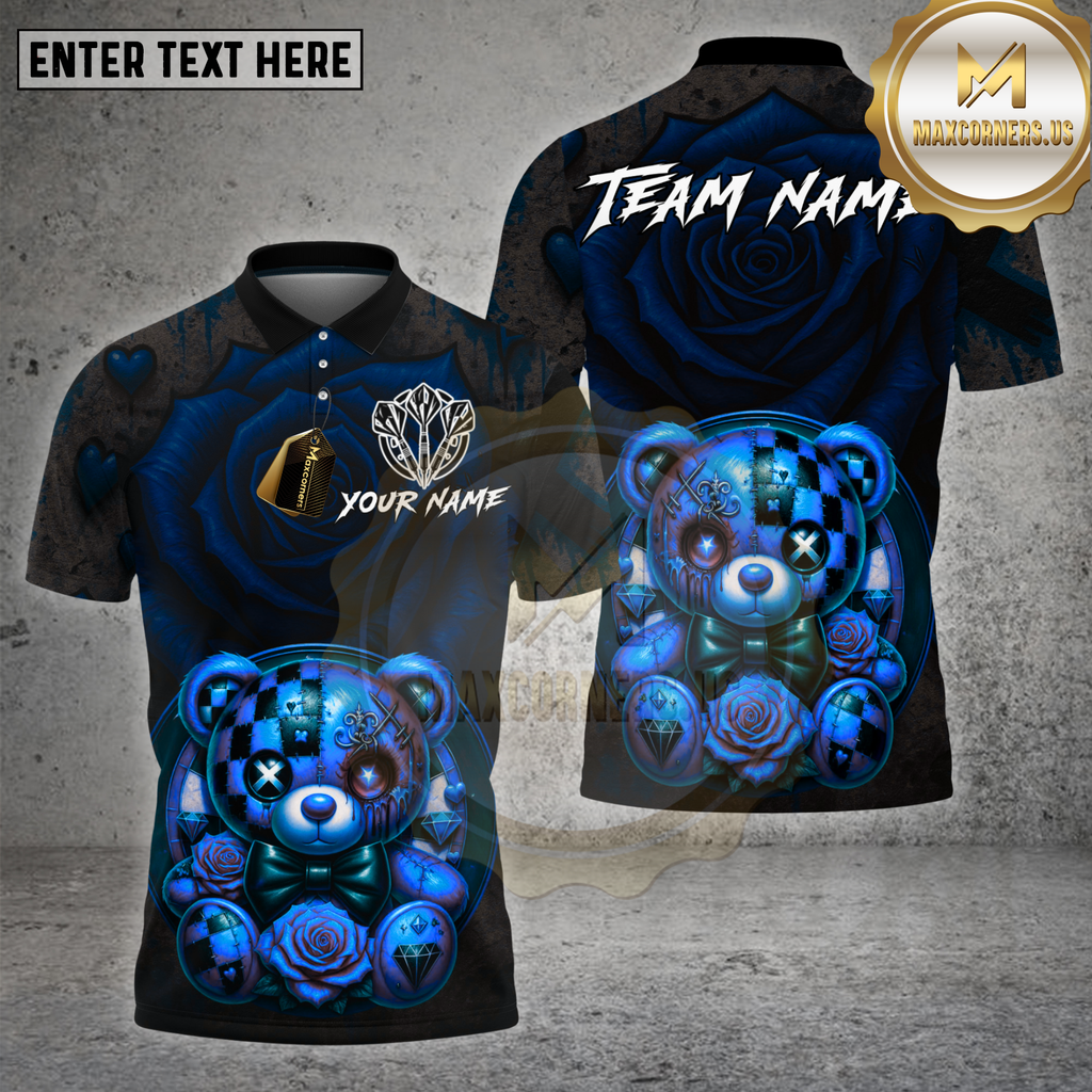 Maxcorners Dartboard Dark Teddy Bear Rose Diamond Design Multi Options Personalized Name Team Name 3D Shirt