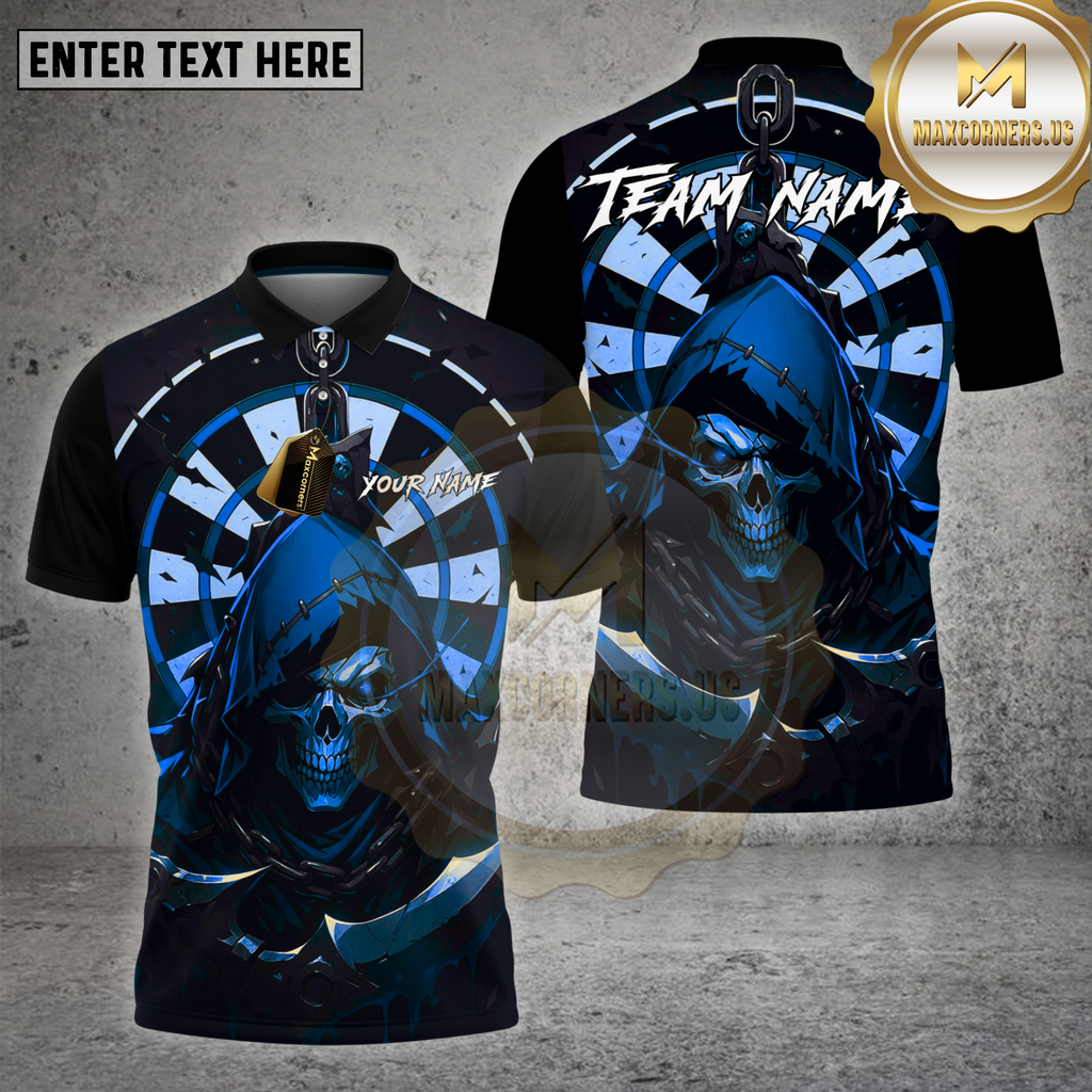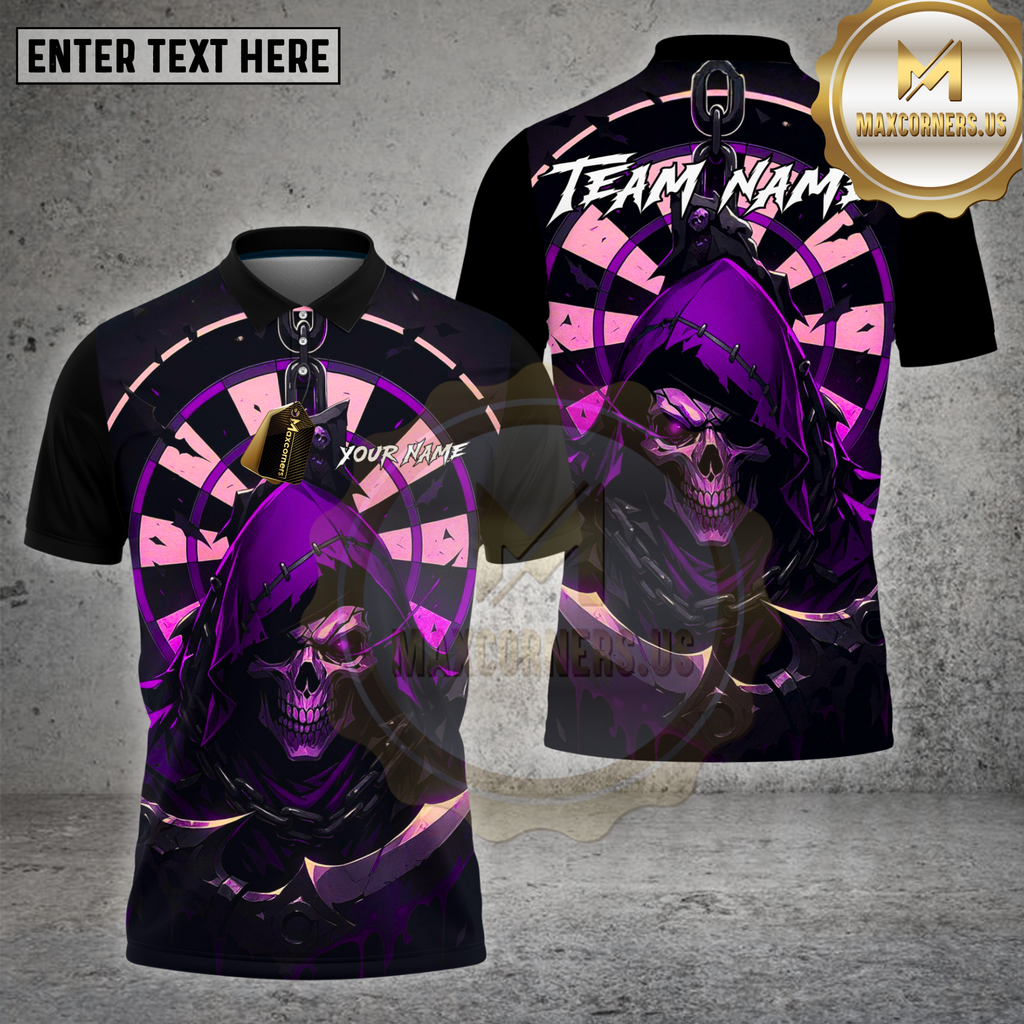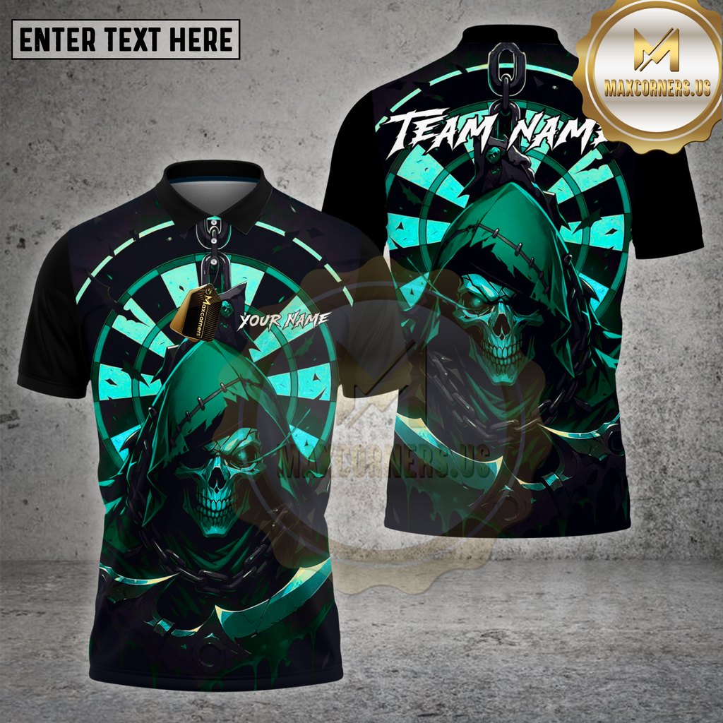 Maxcorners Dartboard Grim Reaper Red Hood Skull Design Multi Options Personalized Name Team Name 3D Shirt