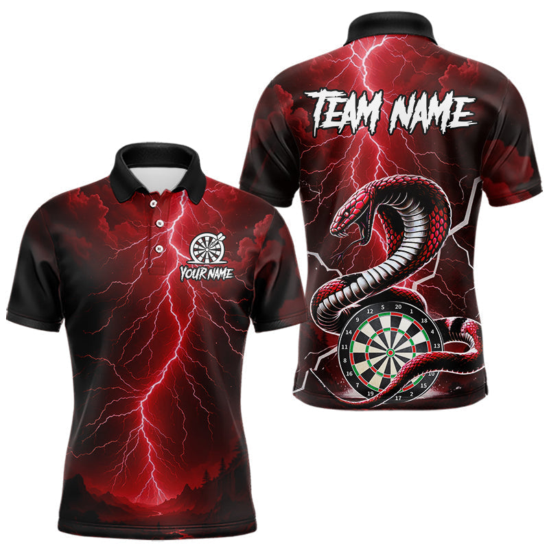 Maxcorners Red Lightning Thunder Cobra Darts Shirt For Men Custom Darts League Team Jersey Polo & 1/4 Zip LM2509