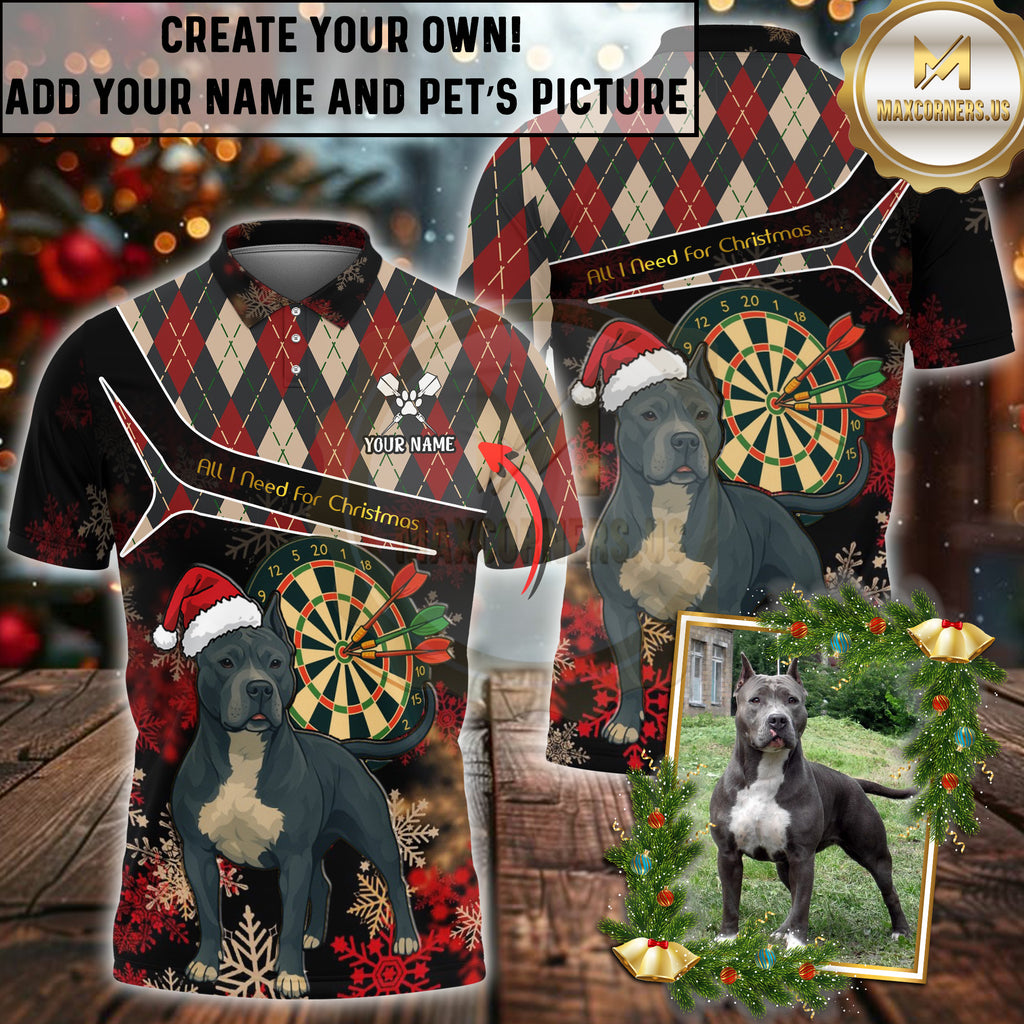 Maxcorners Dart Pitbull Christmas Multioptions Customized Name And Pet's Picture 3D Shirt (5 Colors)