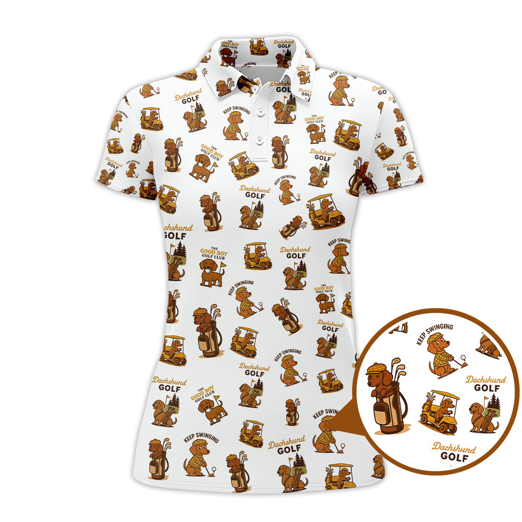Maxcorners Dachshund Pattern Golf Polos, Funny Dachshund Golf Shirt, Pattern Golf Shirt For Golfers