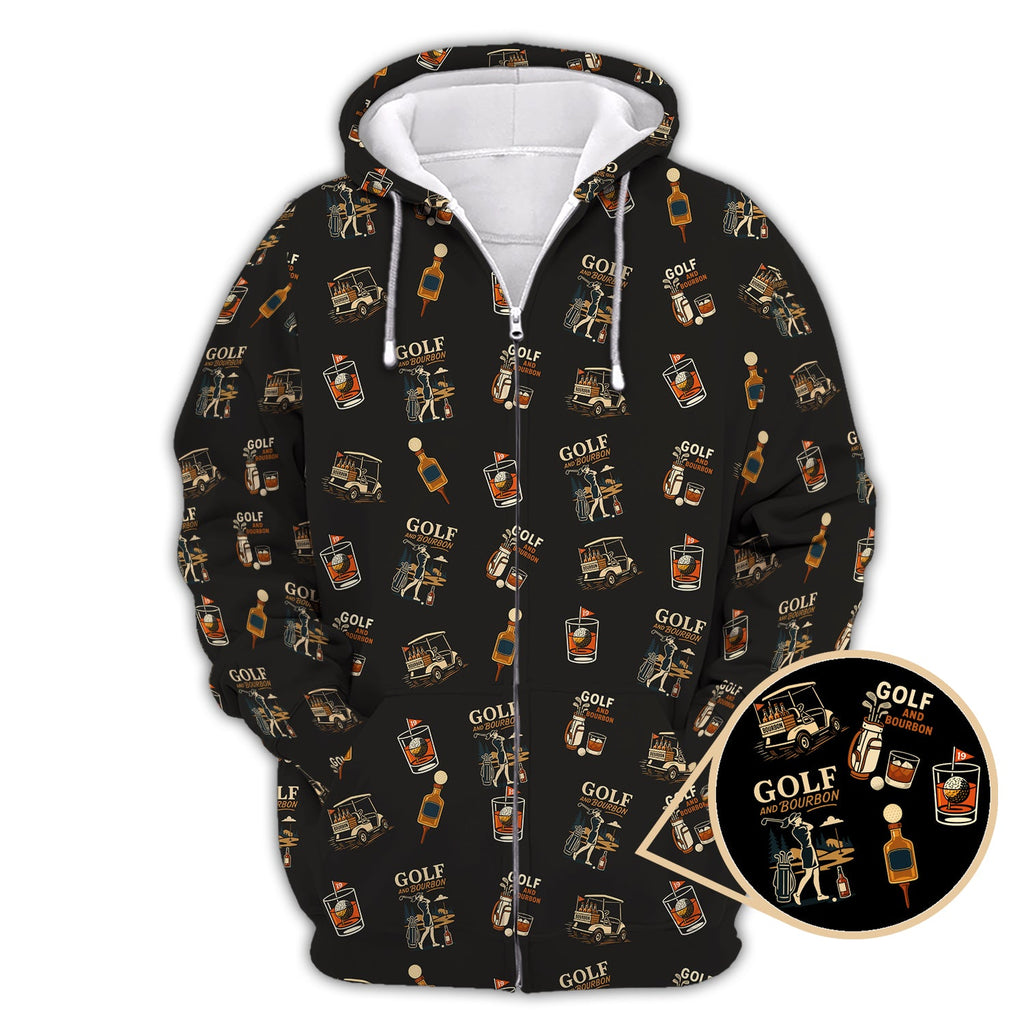 Maxcorners Golf And Bourbon Pattern Polos, Women’s Golf Shirt, Golf Gift For Golfers