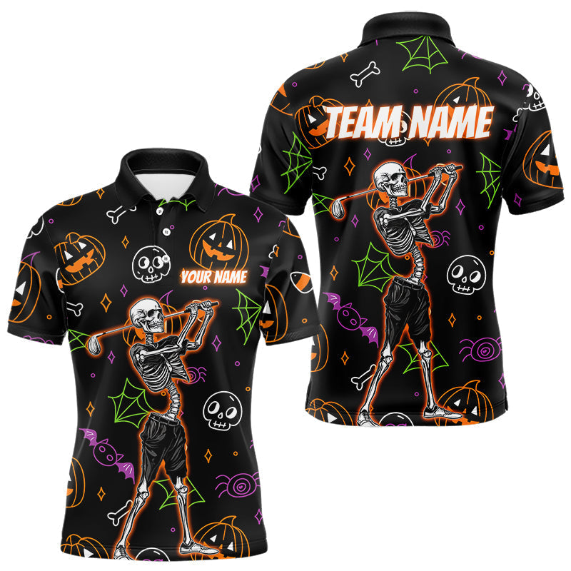 Maxcorners Personalized Funny Halloween Pattern Skull Golf Polo Shirts For Men, Halloween Mens Golf Gifts LM0910