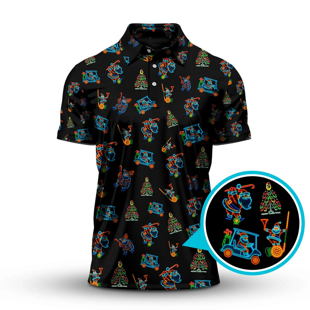 Maxcorners Funny Pattern Golf Shirt For Men, Christmas Golf Shirt, Xmas Golf Shirt, Neon Golf Shirt For Golfer