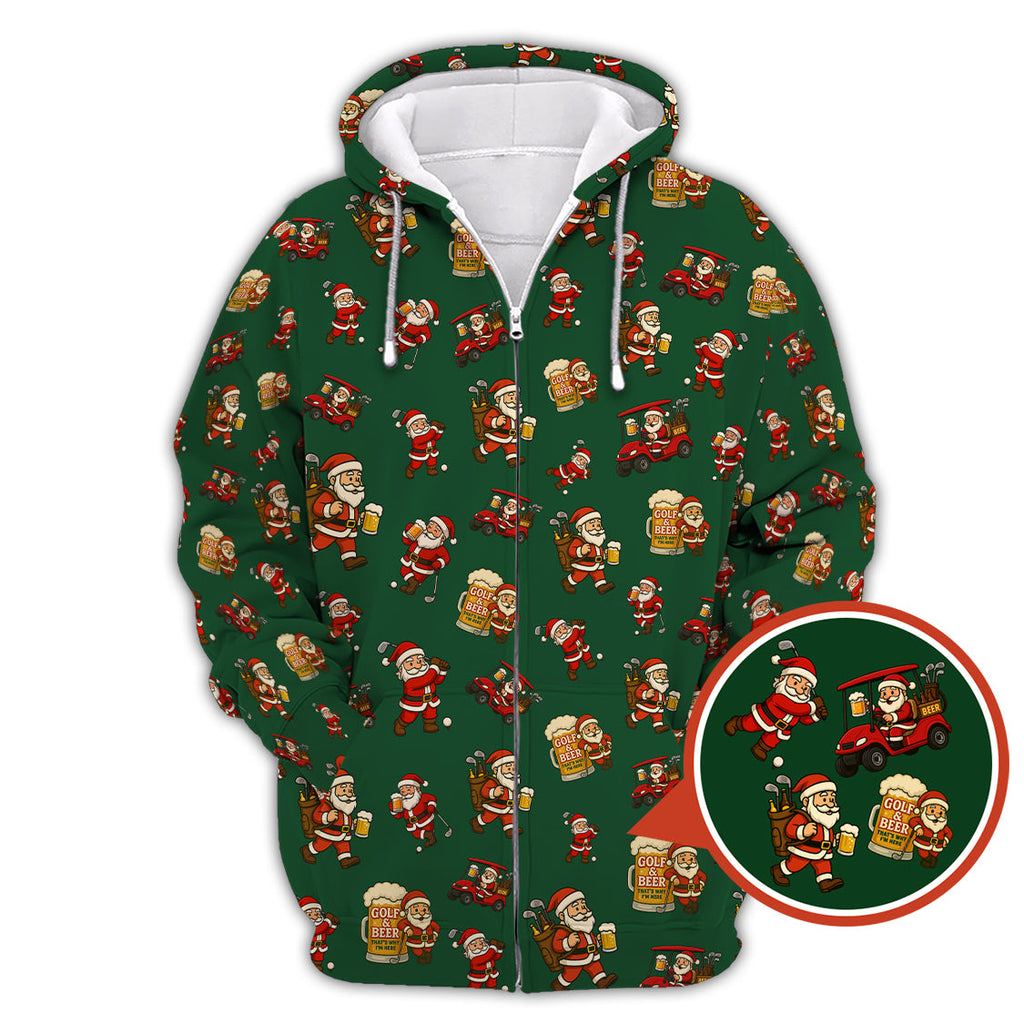 Maxcorners Funny Christmas Golf Shirt For Men, Pattern Golf Shirt , Golf And Beer Shirt For Golfer