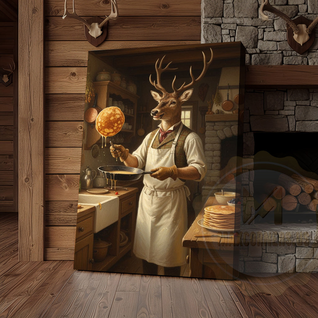 Maxcorners Deer Playing Poker with Friends in Cabin Bar Wrapped Canvas
