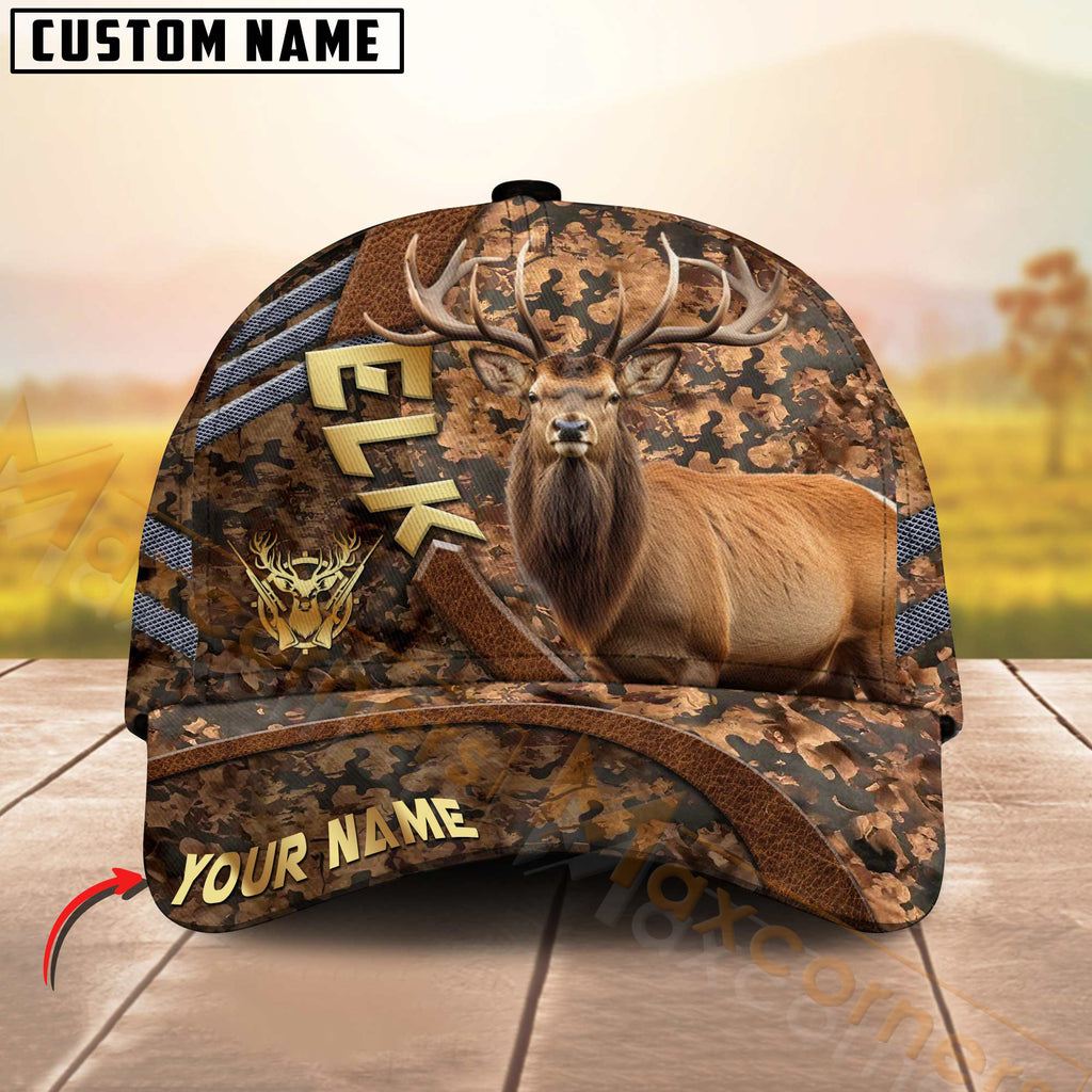 Maxcorners Hunting Cap Brown Camo With Golden Line Personalized Name 3D Cap (Deer/Moose/Elk/Boar)