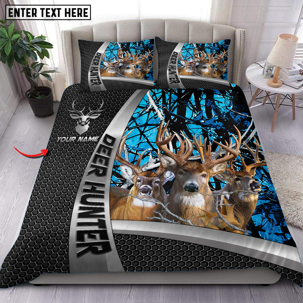 Maxcorners Deer Hunter Blue Forest Camo Personalized Name Bedding Set 3D Printed