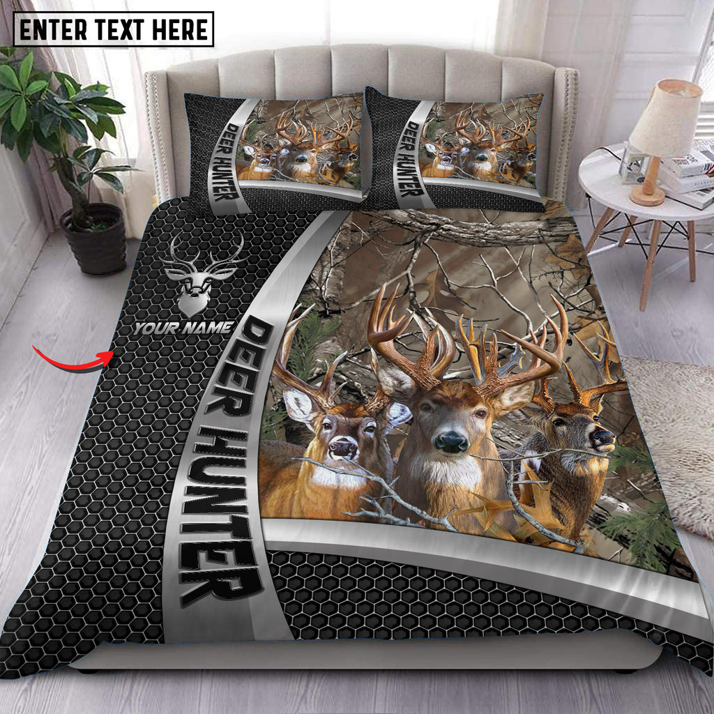Maxcorners Deer Hunter Brown Forest Camo Personalized Name Bedding Set 3D Printed