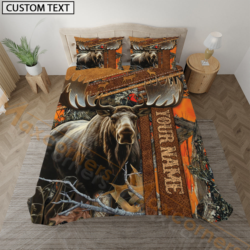 Maxcorners Moose Hunting Rustic Orange Forest Bedding Set 3D All Over Printed