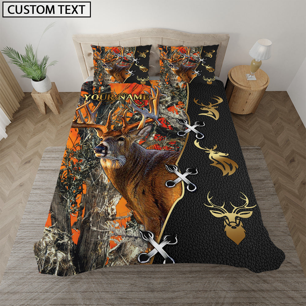 Maxcorners Orange Deer Hunter Forest Pattern Personalized Name Bedding Set 3D All Over Printed