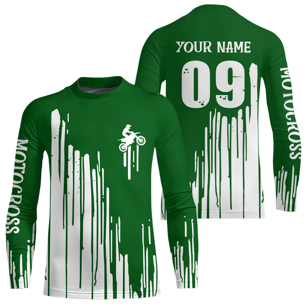 Maxcorners Adult&Kid green custom dirt bike jersey Motocross jersey upf30+ mens women Motocross Shirt