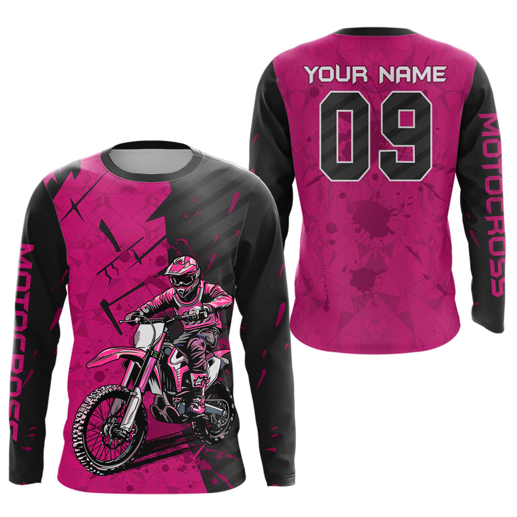 Maxcorners Custom Dirt Bike Jersey Pink Motocross Jersey Upf30+ Mens Women Motocross Shirt