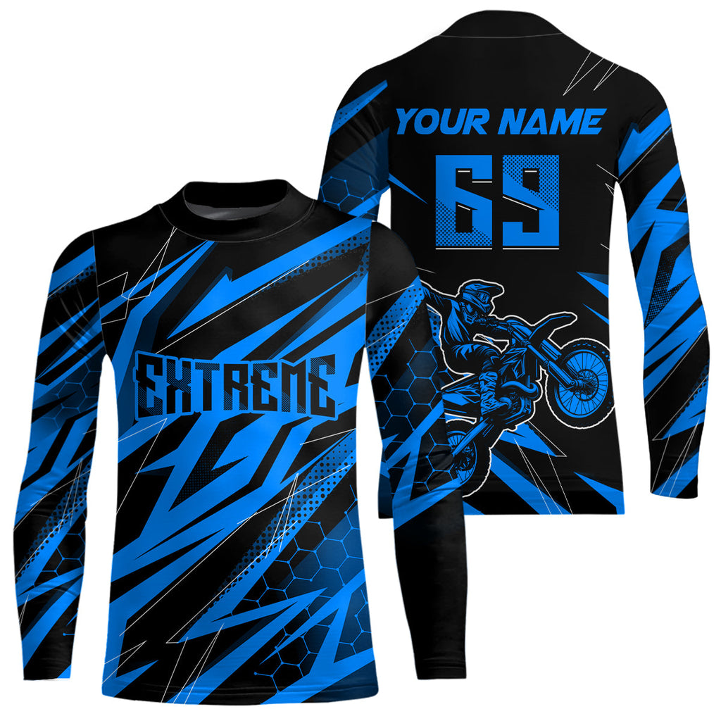 Maxcorners Motocross Jersey Kid Men Women Upf30+ Blue Racing Dirt Bike Shirt Off-Road Motorcycle MT2709