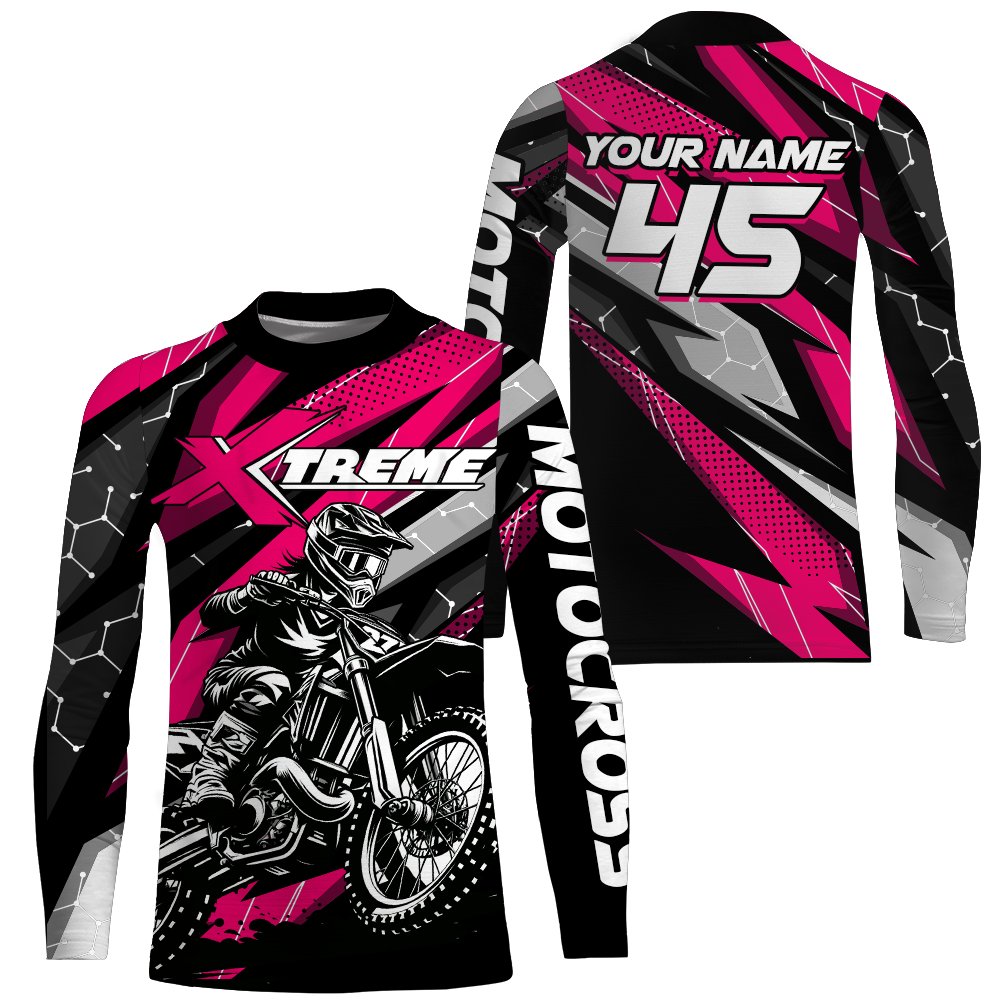 Maxcorners Pink Motocross Jersey Youth Women Men Upf30+ Dirt Bike Shirt Motorcycle Riding Shirt XM271 MT2809