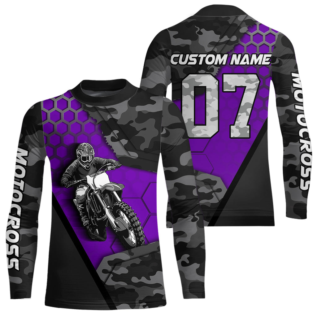 Maxcorners Purple Motocross Jersey Upf30+ Custom Dirt Bike Jersey Mens Women Off-Road Jersey Adult&Kid MT2809