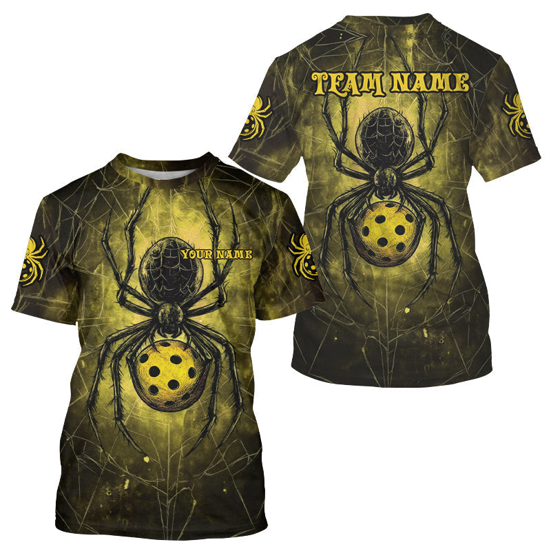 Maxcorners Custom Yellow Spider Grunge Pickleball Ball T-Shirt For Men Funny Pickleball Jerseys LM0910