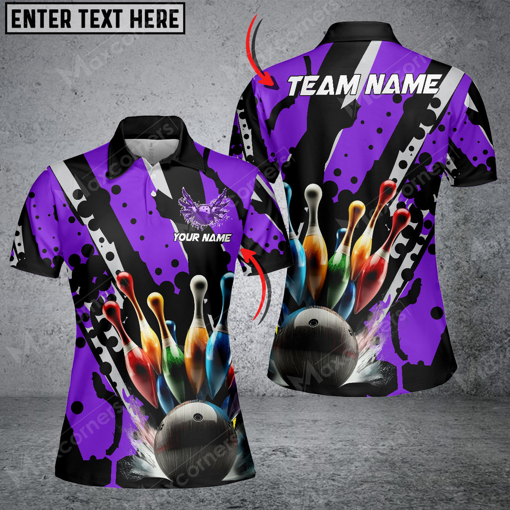 Bowling Ball And Pins Eagle Wings Multicolor Option Customized Name 3D Shirt For Women (6 Colors)