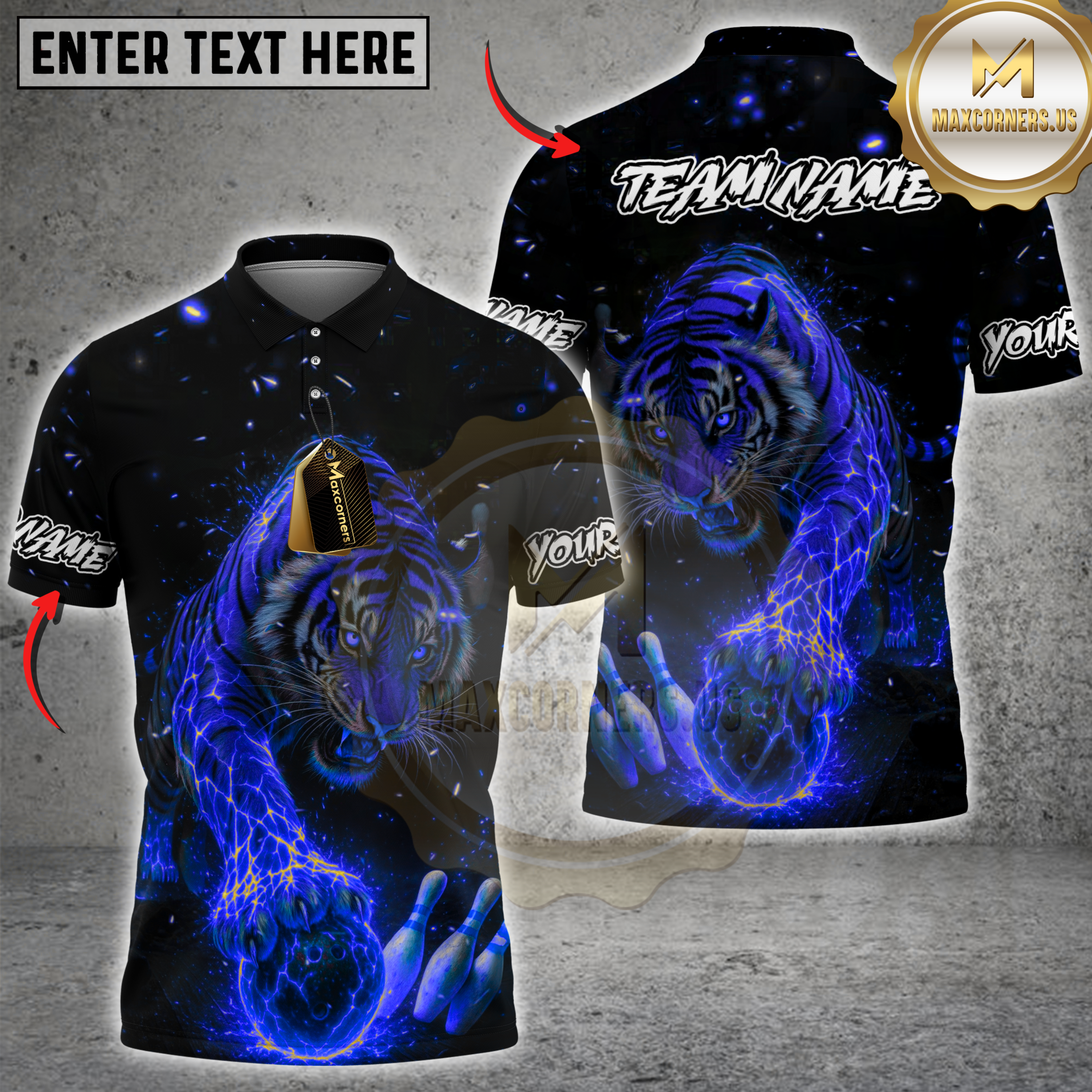 Maxcorners Bowling Fire Tiger Multicolor Customized Name, Team Name 3D Shirts