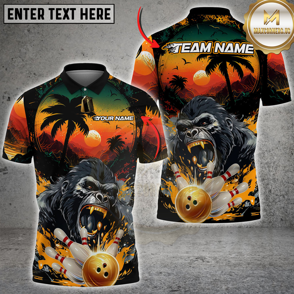 Maxcorners Bowling Gorilla Strike Multicolor Customized Name, Team Name 3D Shirts