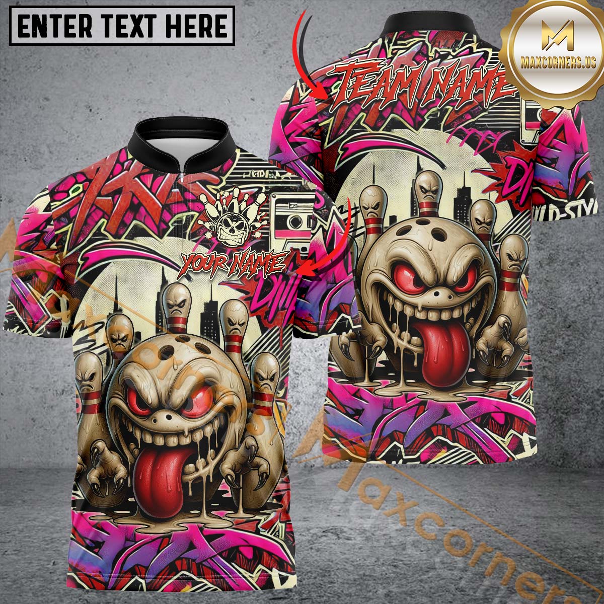 Maxcorners Bowling Mad Bowl Graffiti Style Multicolor Customized Name, Team Name 3D Shirts