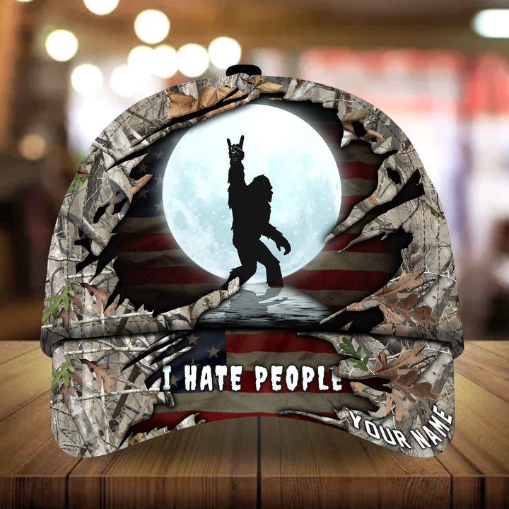 Max Corners I Hate People Bigfoot With Moon Camping Art Camo pattern 1 Custom 3D Cap