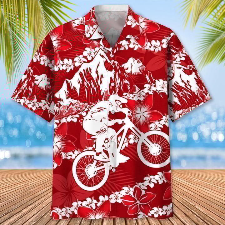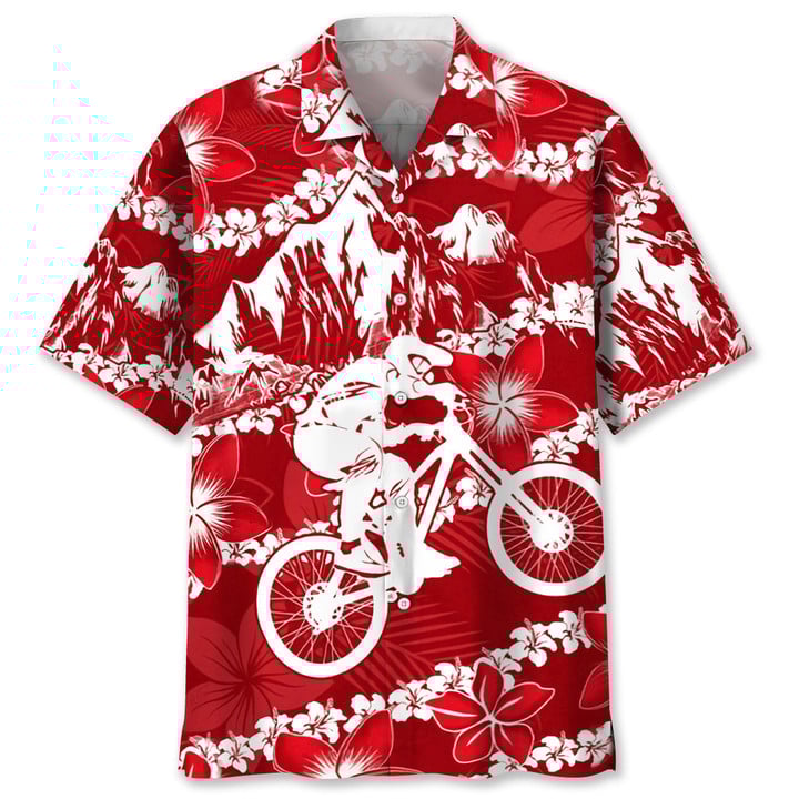 Maxcorner MOUNTAIN BIKE RED NATURE HAWAIIAN SHIRT