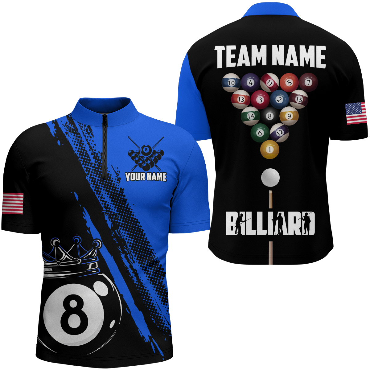 Maxcorners 8 Ball Pool Crown Blue Billiard Jersey Customized Name, Team Name 3D Shirt