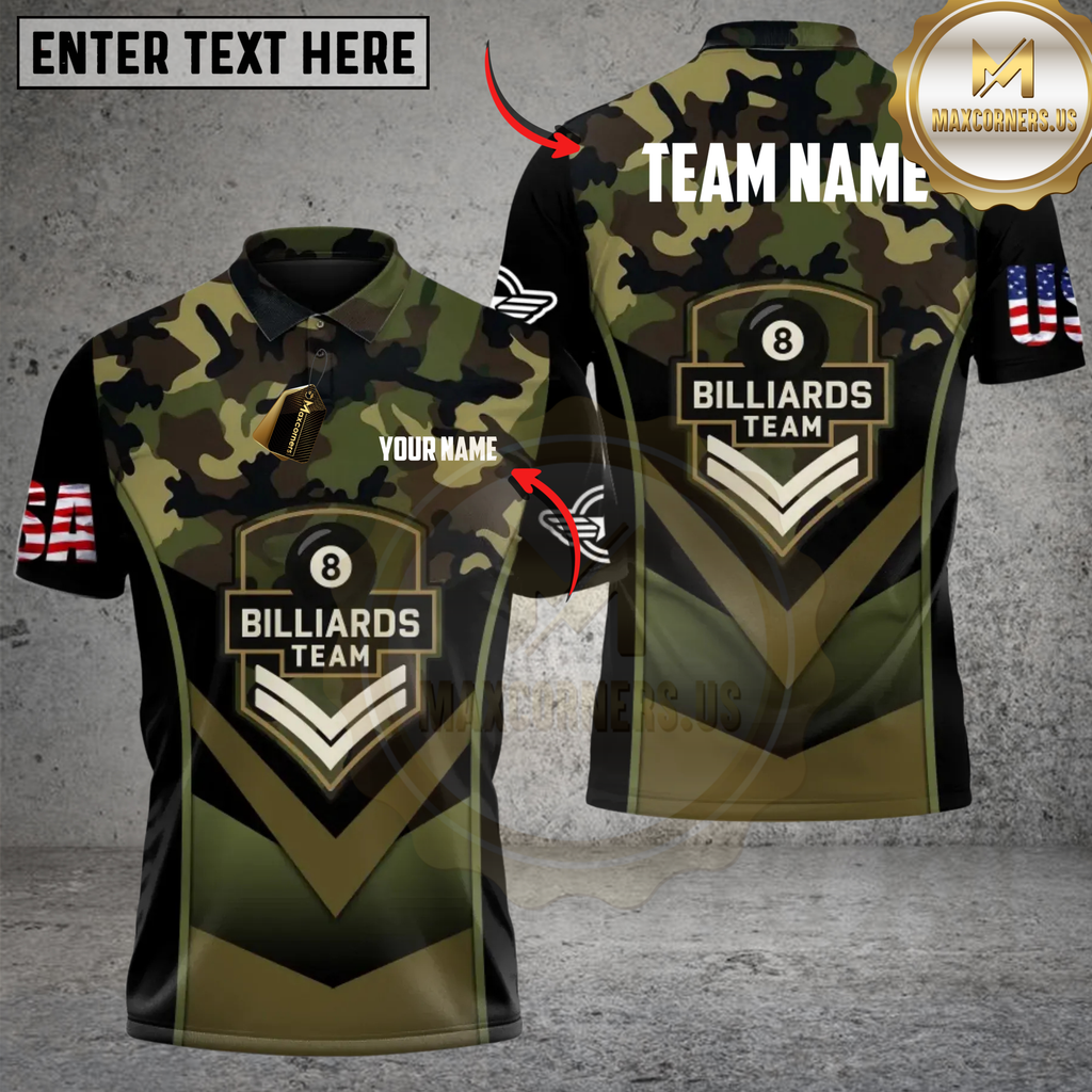 Maxcorners Billiard Combat Camo Pool Team Strike Personalized Name 3D Unisex Shirt