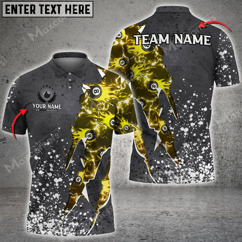 Maxcorners Billiards 8 Ball Fire Thunder Personalized Name, Team Name Unisex Shirt ( 6 Colors )