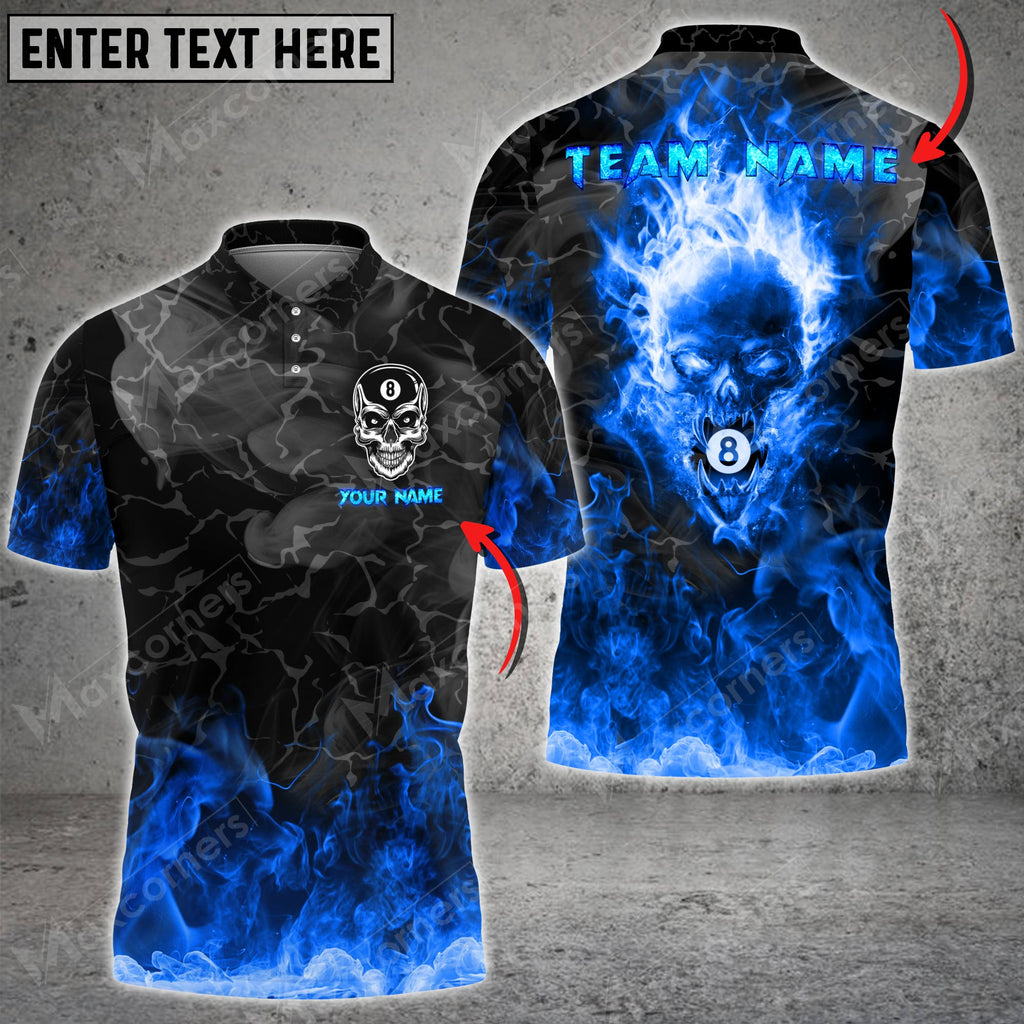 Maxcorners Billiards Flame Skull Personalized Name, Team Name Unisex Shirt ( 4 Colors )