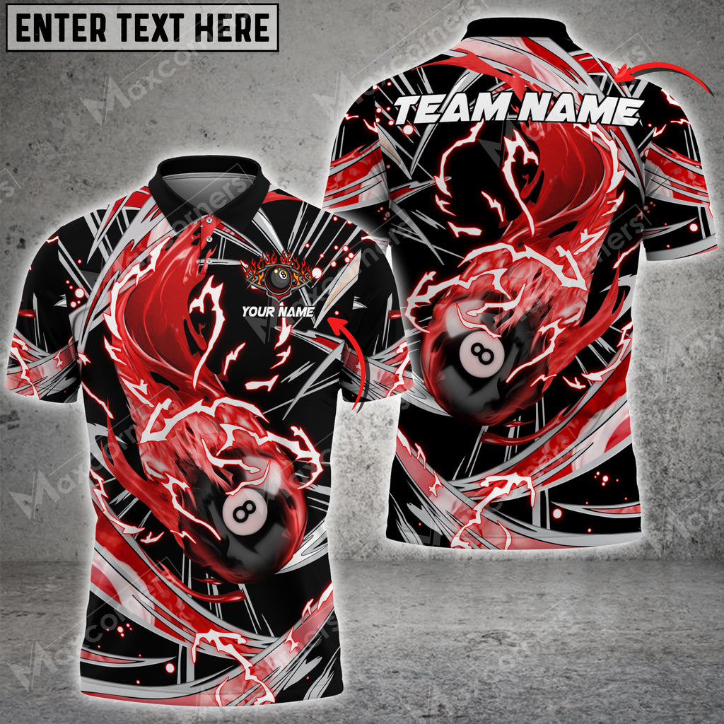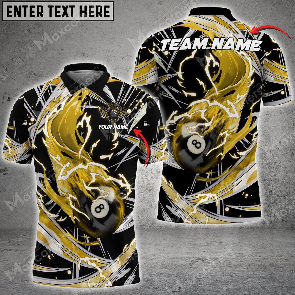 Maxcorners Billiards Flame Thunder Wind Aura Personalized Name, Team Name Unisex Shirt ( 6 Colors )