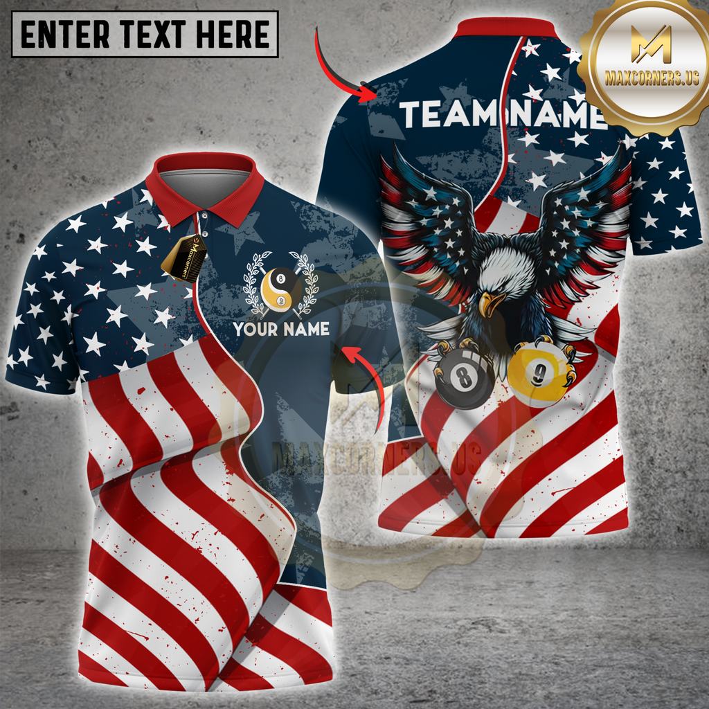 Maxcorners Billiards Sport American Eagle Yin Yang 8 Ball Flag Design Personalized Name 3D Unisex Shirt
